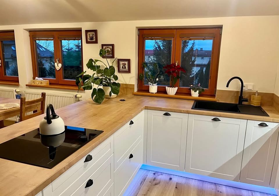 Výsledkem byly krásné a funkční návrhy, které přesně odpovídají našemu stylu a ve kterých se cítíme doma. V kuchyni oceňujeme každý detail – od úložných prostor až po drobné vychytávky, které usnadňují každodenní fungování a doslova se nové kuchyně "nemůžeme nabažit". Dětský pokoj je hravý, útulný a přitom nadčasový, takže skvěle poroste spolu s dcerou. Paní designérka zohlednila její věk a v budoucnu postačí pár drobných úprav a pokoj se může rázem proměnit v pokoj pro mladou slečnu.